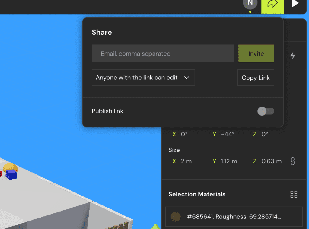 特徴は、作成したシーンを共有して他の人と共同作業で3Dを作成することができます。