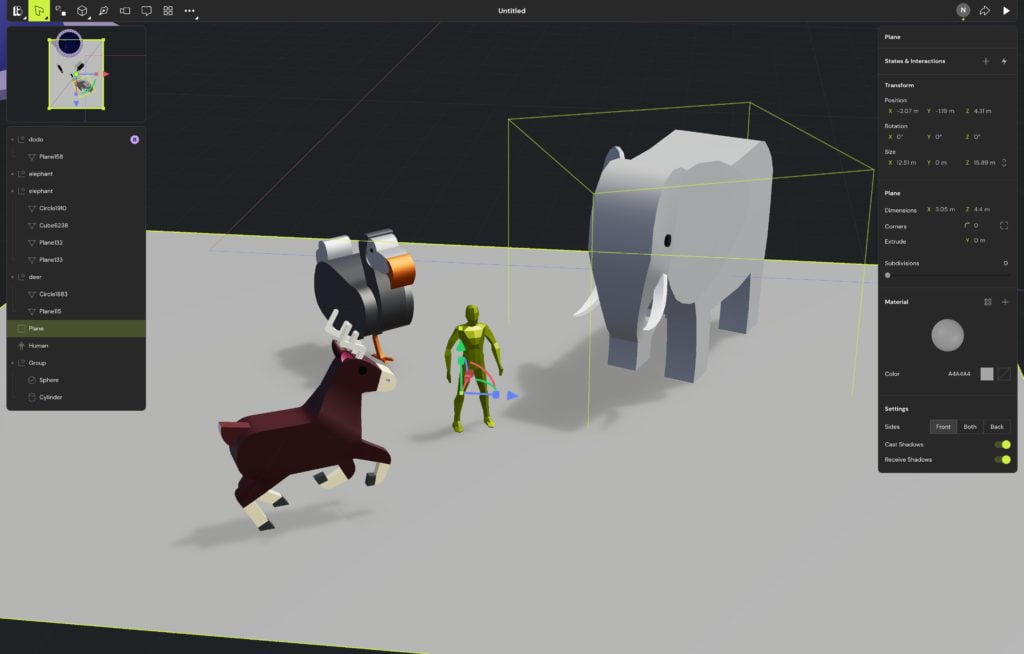 動物以外にも、家具、植物、幾何学的な図形など、ライブラリのモデルもシーン追加後に色を変えたり、大きさを変えたりといった編集ができます。