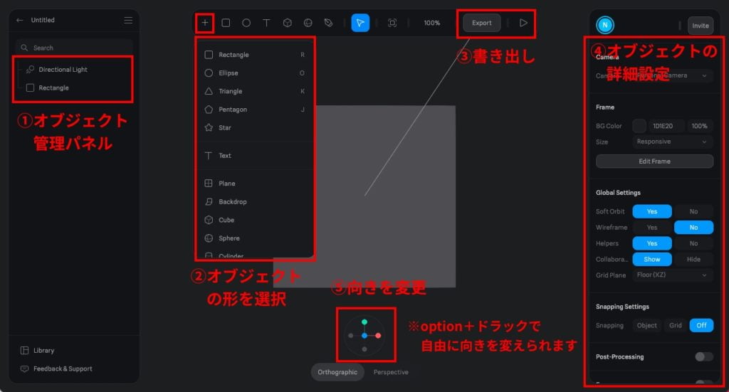 初心者でもなんとなく3Dっぽいものがつくることができましたね。すごいです「Spline」。