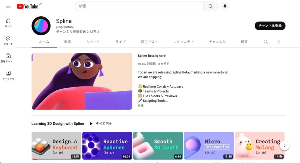 Splineの公式Youtubeチャンネルで作成方法が公開されていますので、初心者の方はこちらを参考に使い方を学ぶことができます。