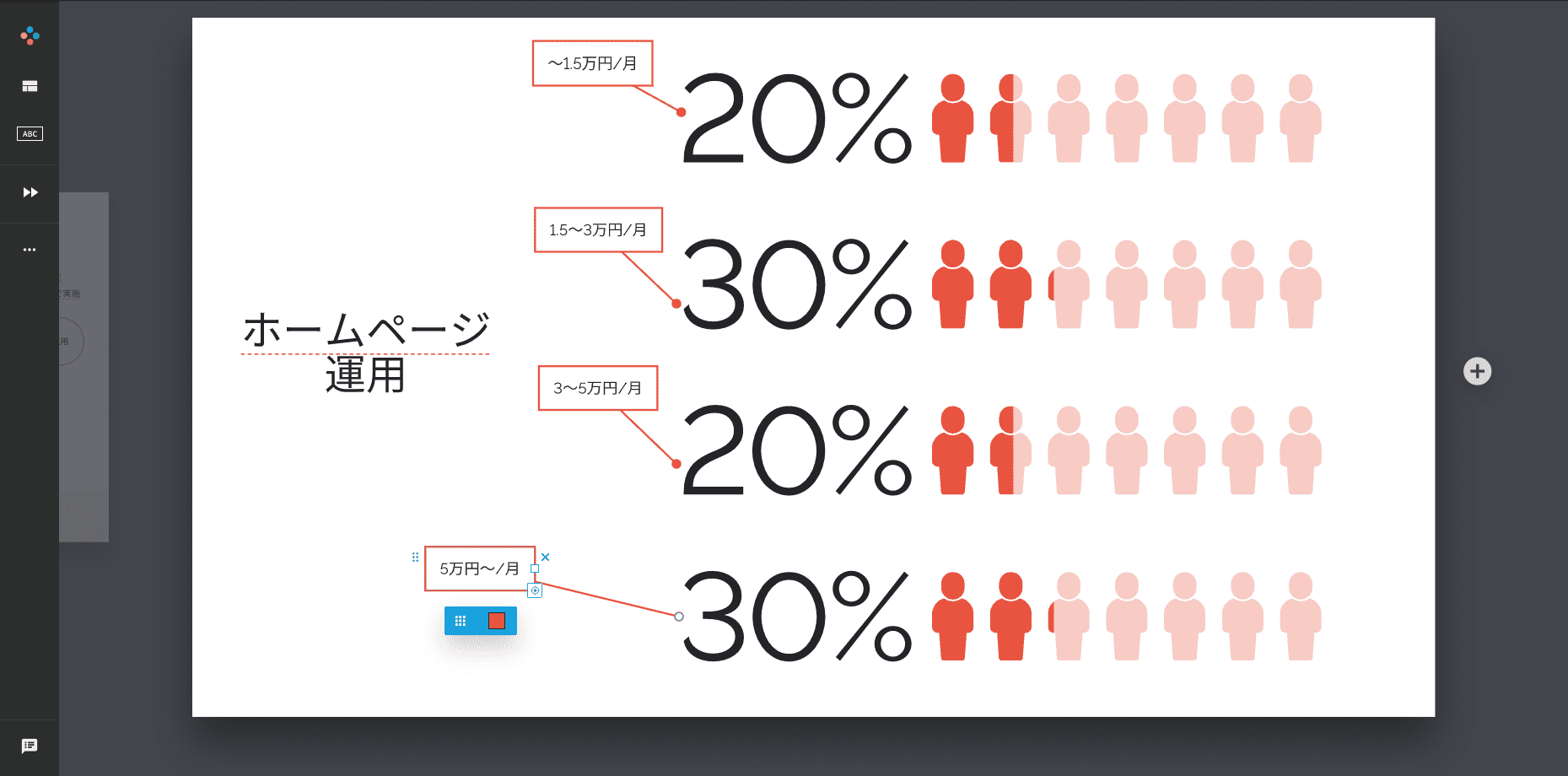 テンプレートとは別で文字を入れることもできるので、スライドの情報量も増やすことができます。