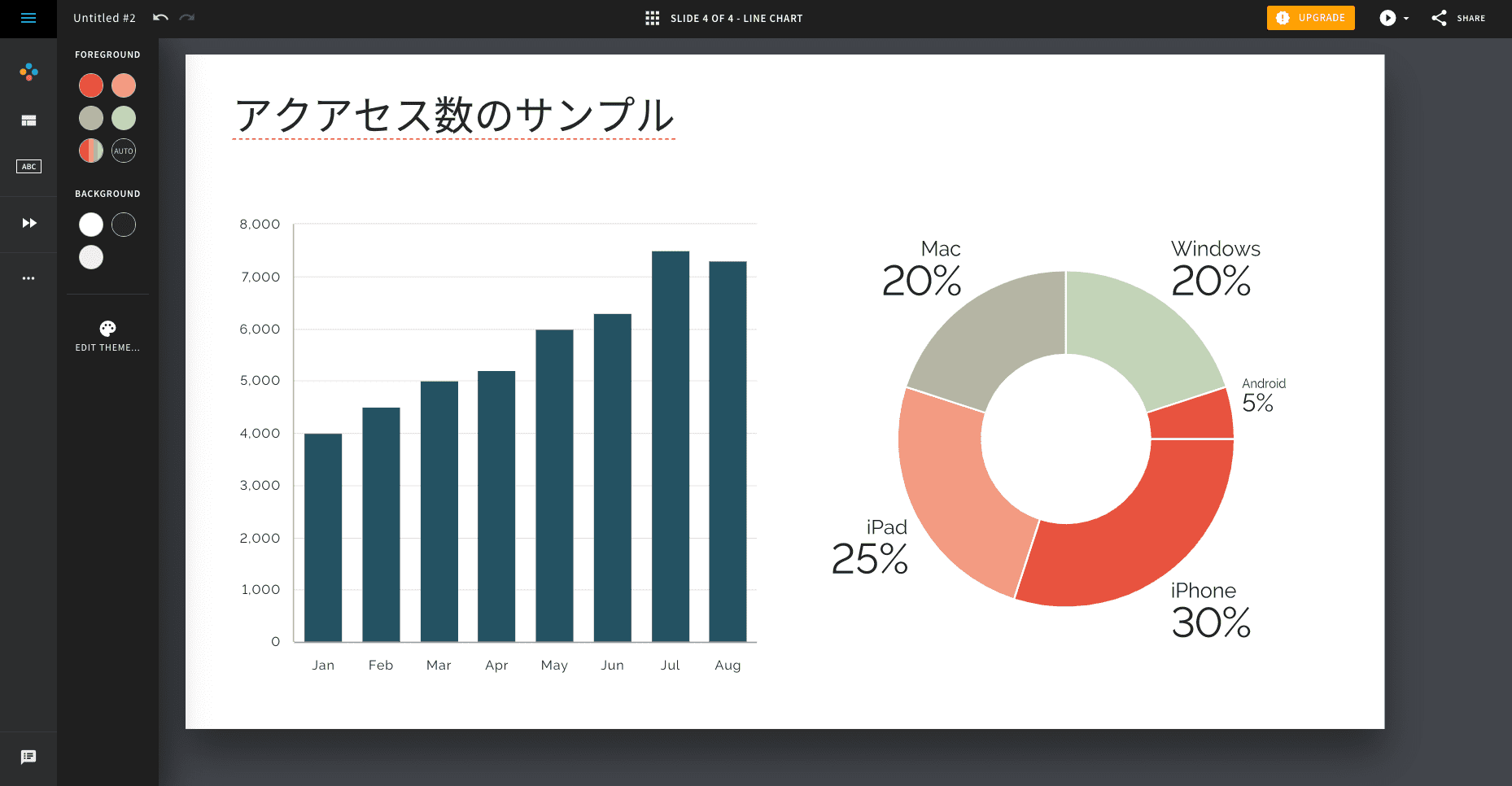60種類以上の豊富なテンプレートがあり、オシャレなグラフのテンプレートも用意されています。