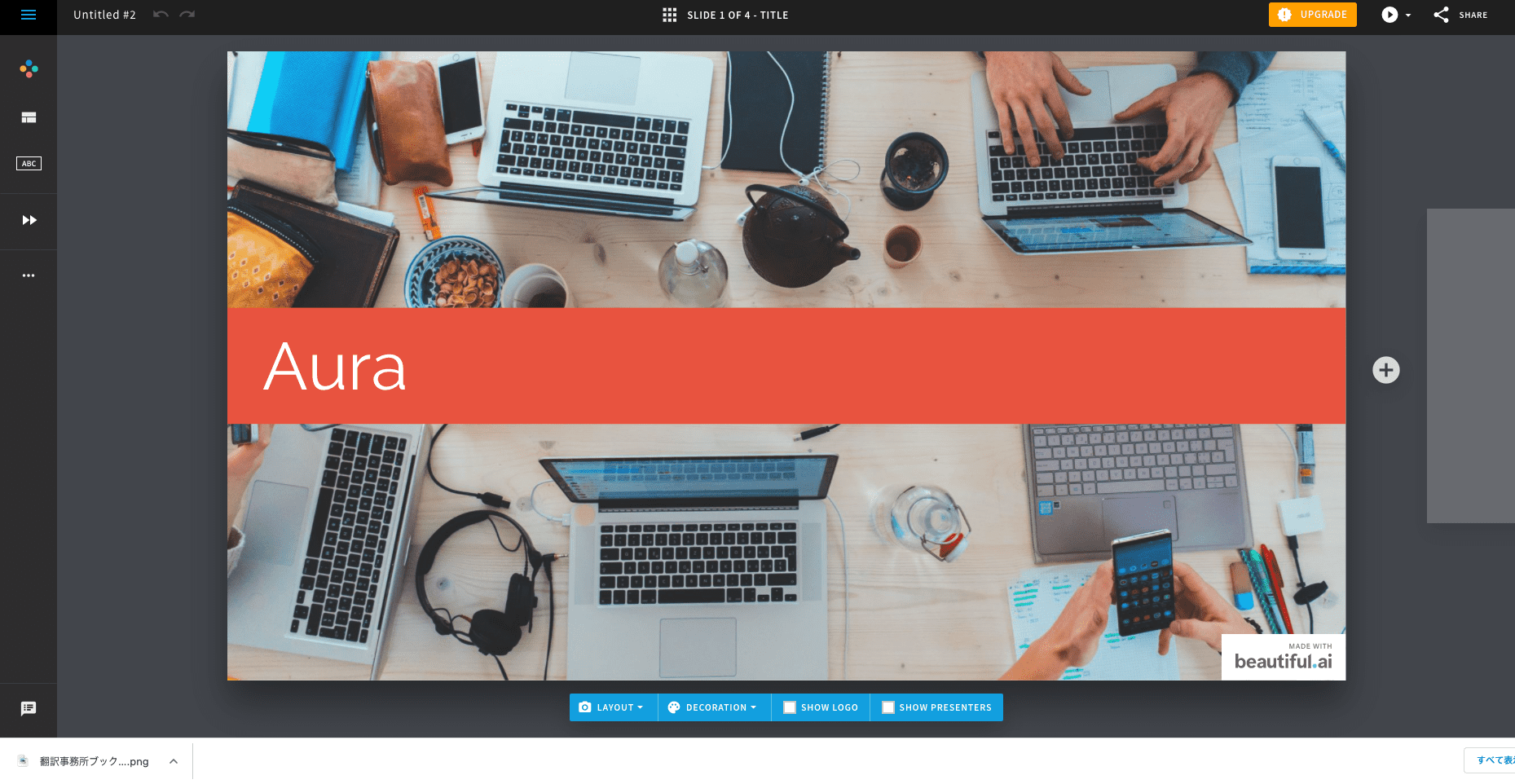Beautiful.AIはプレゼン資料を作成するツールで、無料でも使えます。