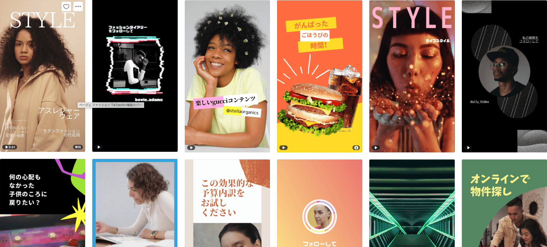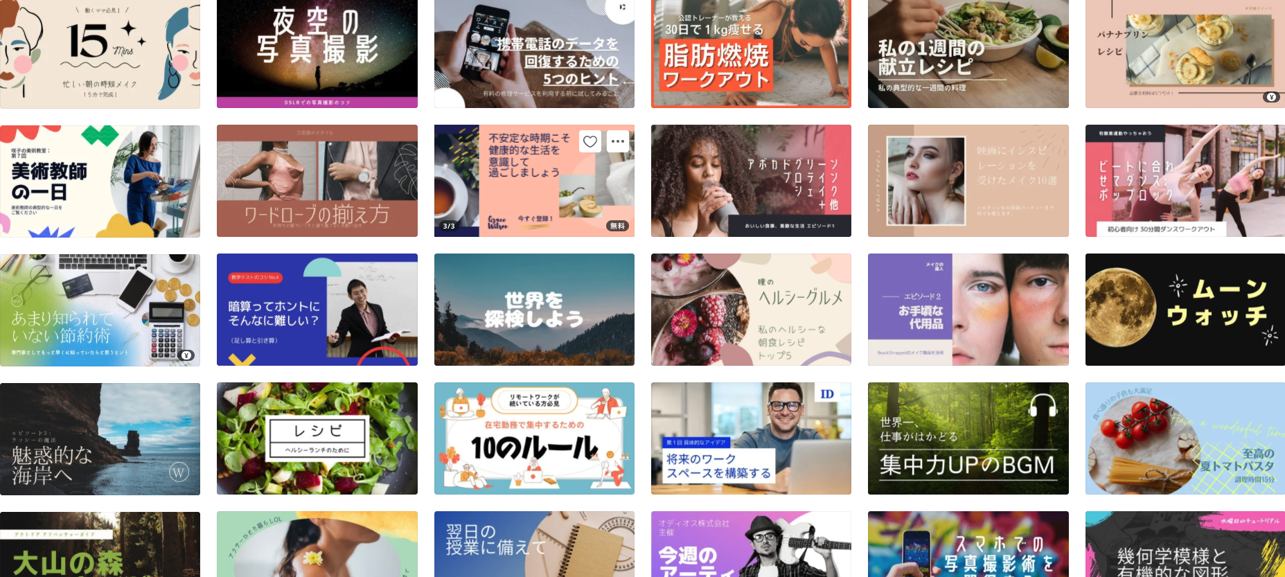 YouTubeサムネイル用のテンプレートが豊富に用意されており、面白くてオシャレなサムネイルで視聴回数を増やしましょう!