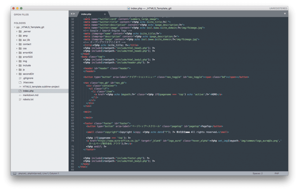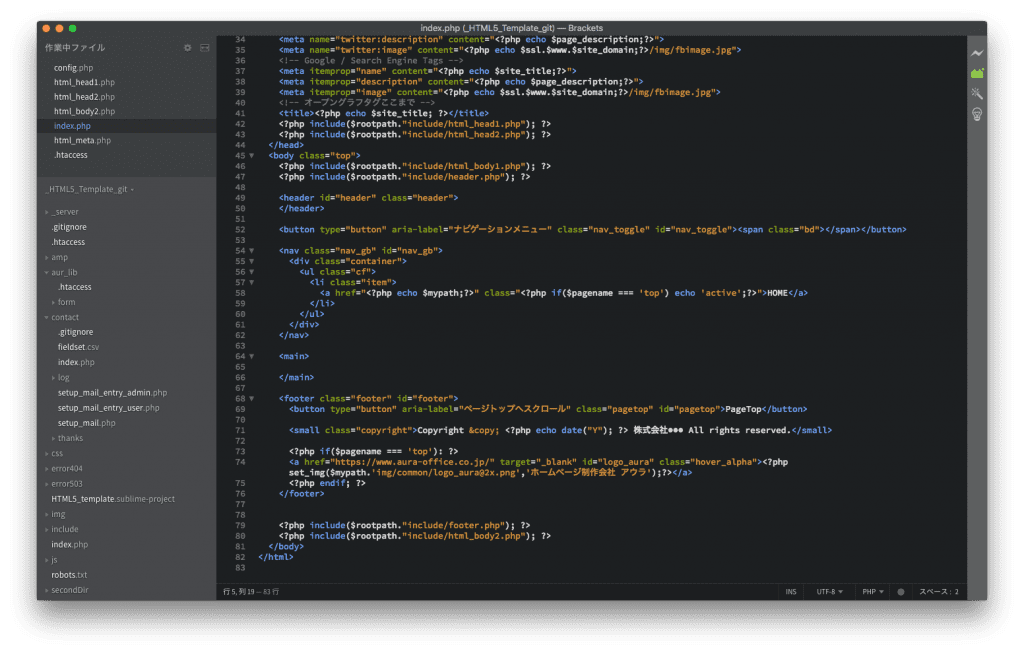 また「Brackets」や「Atom」は「Visual Studio Code」や「Sublime Text 3」に比べると起動時間や文字置換の速度が遅く、快適さは少し劣るかなといった印象です。