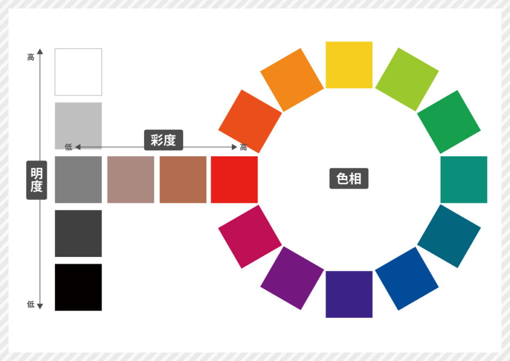 また、色には「色相」「明度」「彩度」の色の三要素があり、それらの組み合わせでさらに多くの色を識別できています。