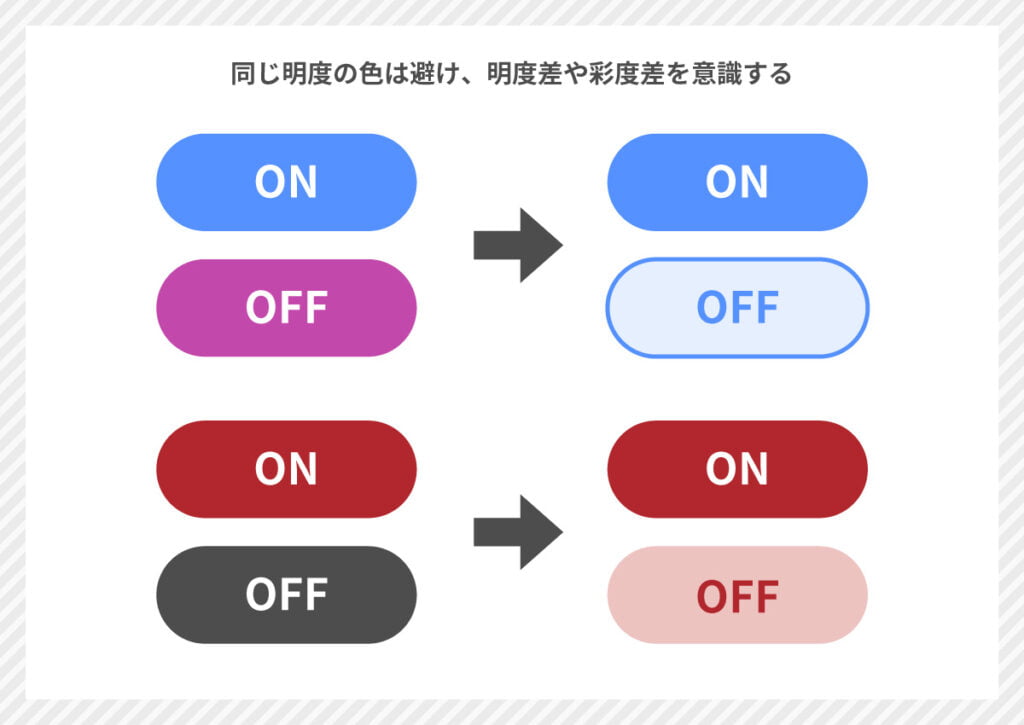 色相で区別せず、明度差と彩度差で区別する。
