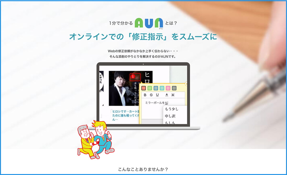 AUN(アウン)では、簡単に修正指示書を作成し共有することが可能です。