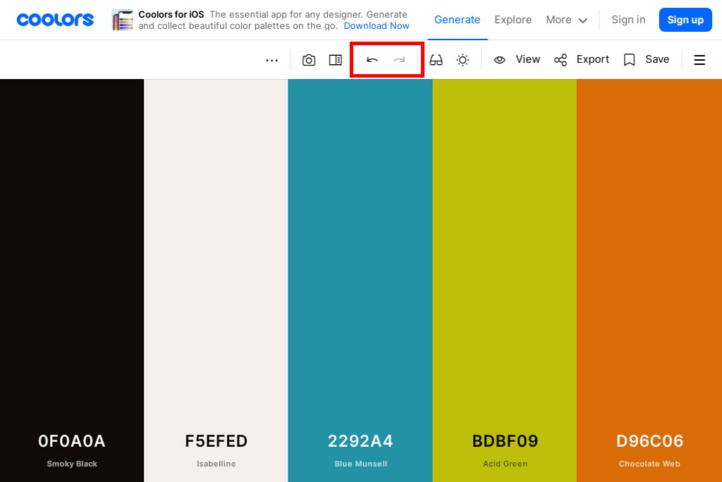 「さっきの配色が良かった!」というように、前後に表示された内容に戻りたい場合は、画面上部のUndoまたはRedoアイコンをクリックしてください。