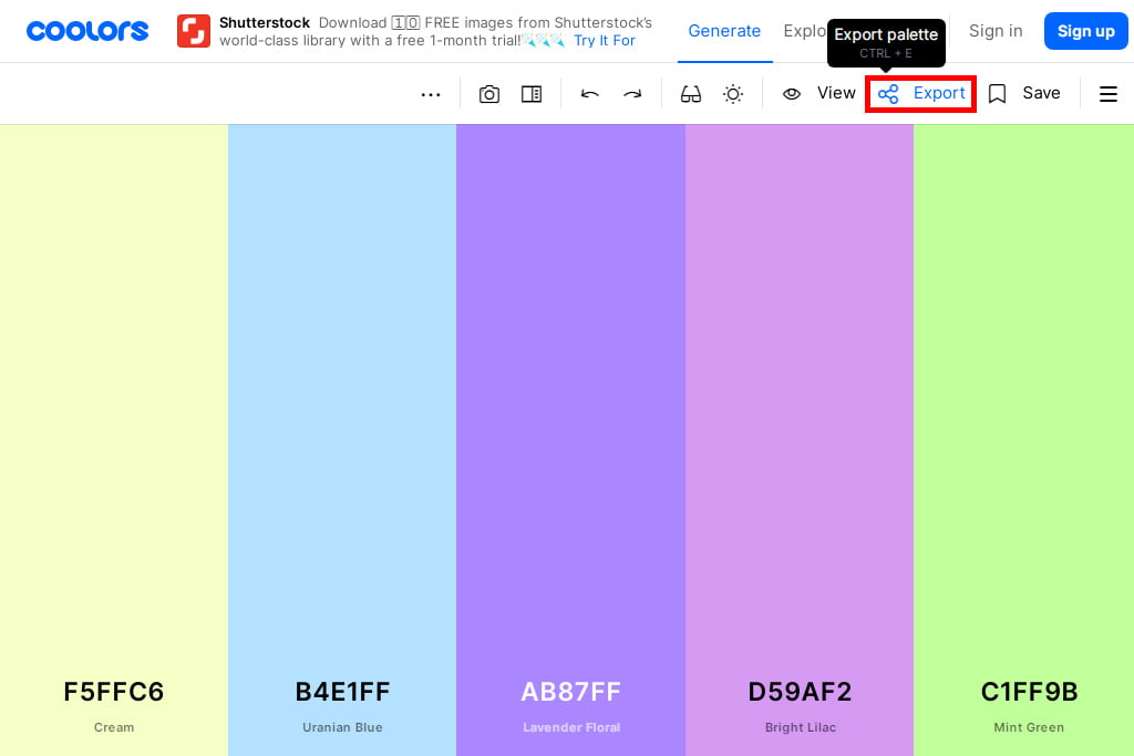 配色が完了したら、Exportをクリックしてください。