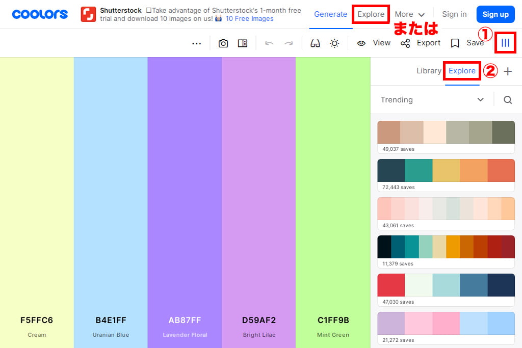 自分でオリジナルのパレットを作ることはもちろん、他の人が作成した配色パターンを参照することもできます。