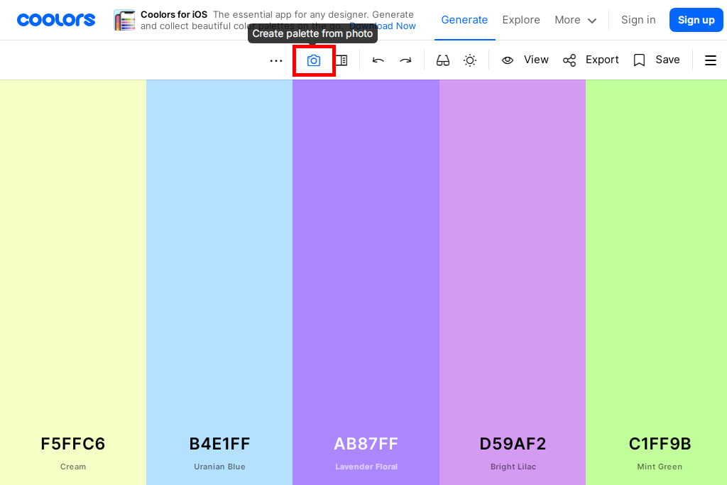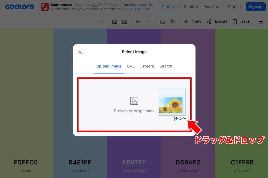 Coolorsでは、写真や画像を参照してパレットを作成する機能があります。