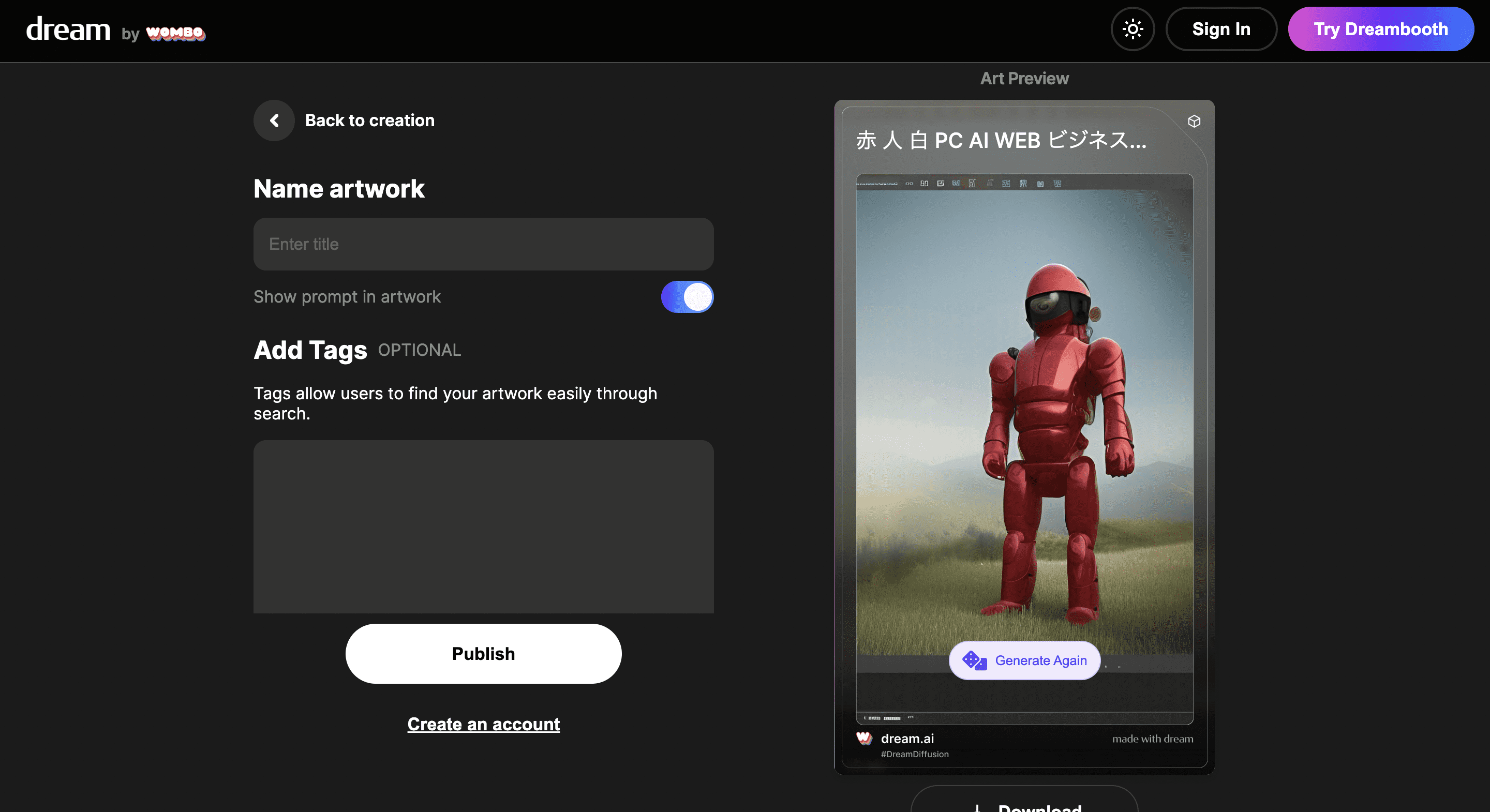 キーワードからAIが自動で絵を生成してくれるツール Dream by WOMBO