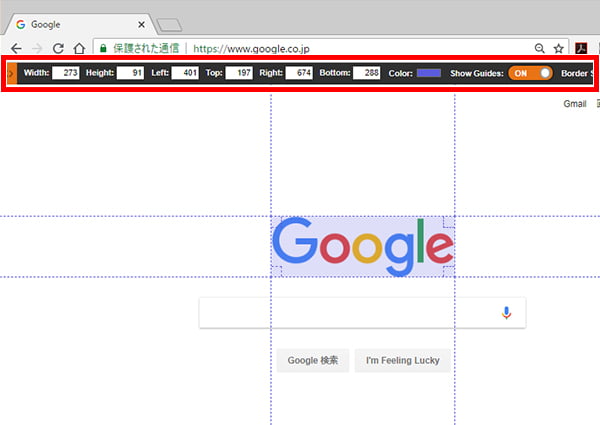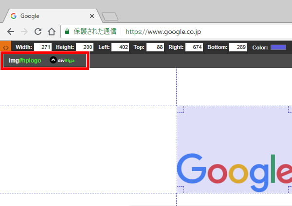 クリックすると、指定した範囲や位置のサイズではなく、要素単位で計測できるようになります。