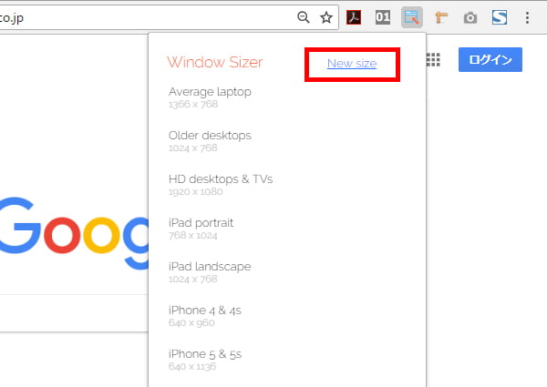 あらかじめ幾つかサイズが用意されているのに加えて、「New Size」から設定を新規作成することもできます。