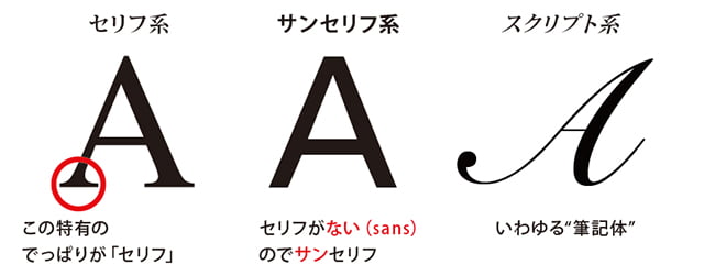 サンセリフとは、セリフ(文字の線の端につけられる線・飾り)のない書体の総称です。