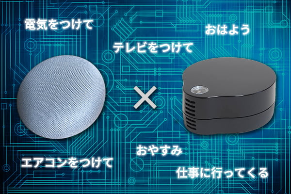 Google Home:「おはようございます。」「照明をつけました。」「テレビをつけました。」「今日の大阪市の天気は・・・」
