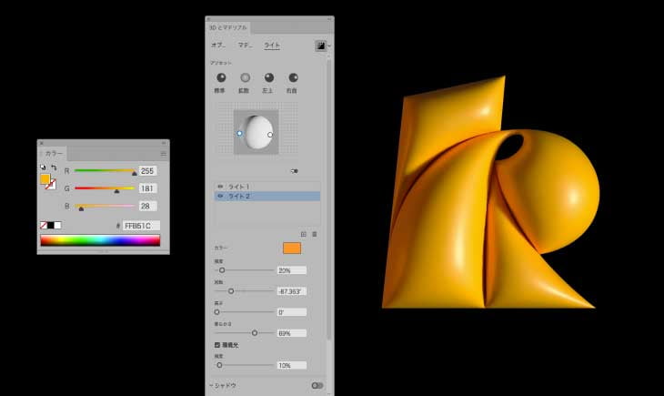 最後に、「3Dとマテリアル」のツールボックスの「ライト」を増やして微調整してみました。