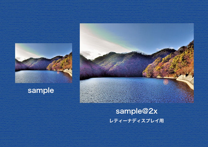 アウラでは、現在は標準で2倍サイズの画像をセットで書き出しています。