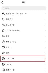 アカウントをクリックします。