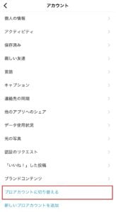 インサイトを見るにはプロアカウントに切り替える必要がありますので、