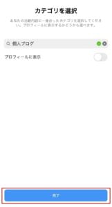 カテゴリを選択し完了をクリックします。