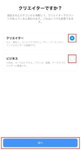 クリエイターもしくはビジネスを選択し次へをクリックします。