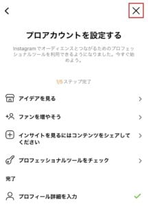 設定完了ですので✖️をクリックしプロフィールページに戻ります。