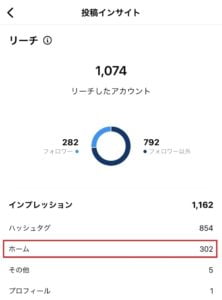 インスタグラムでは『発見』や『トップ』に表示されることで普段の倍以上のインプレッションが期待できます。