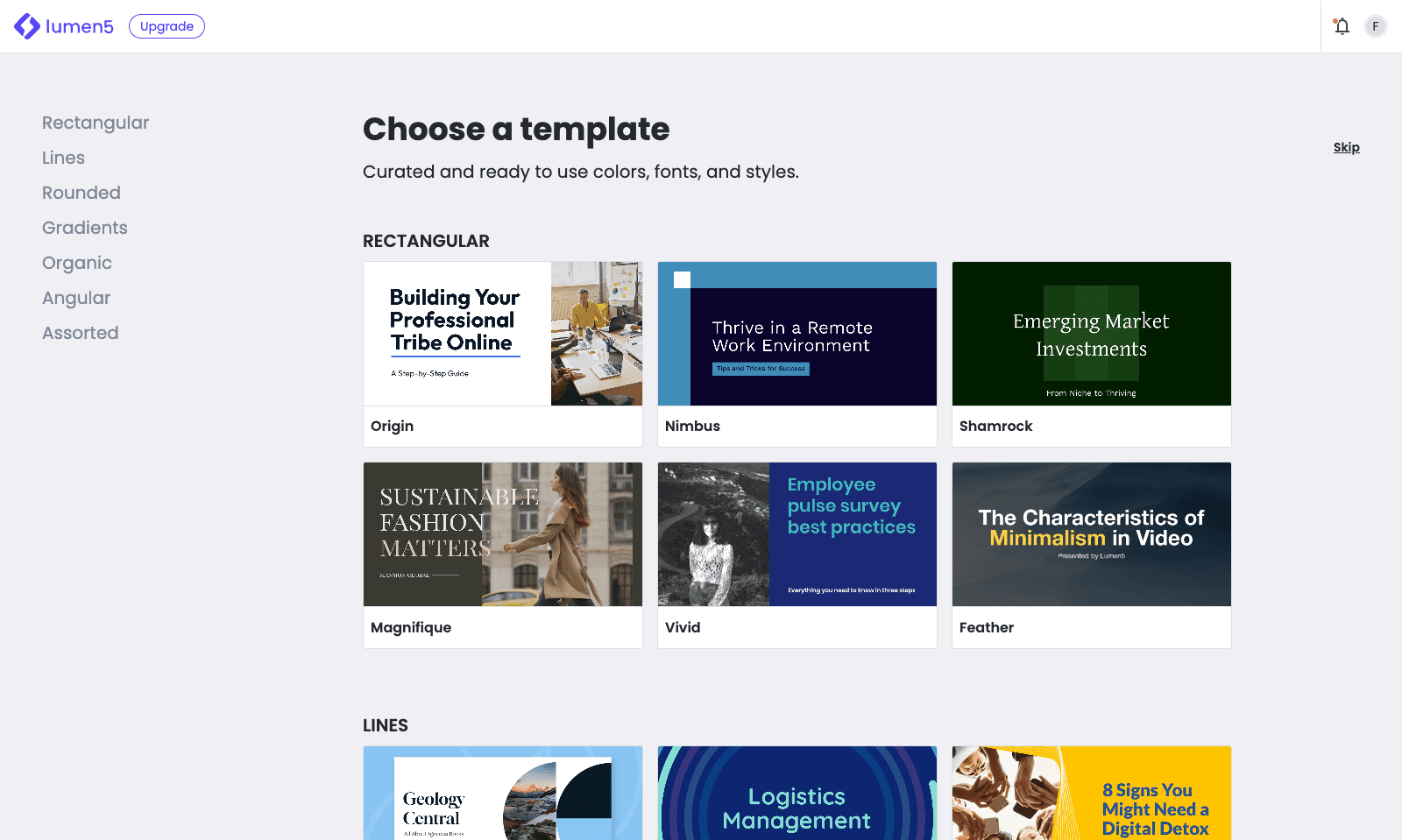 次に、Lumen5が提供するテンプレートの中から好きなデザインを選びます。