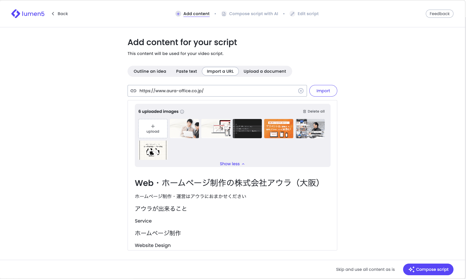 3. Lumen5を使ってURLから簡単にウェブサイトの動画を作成!
