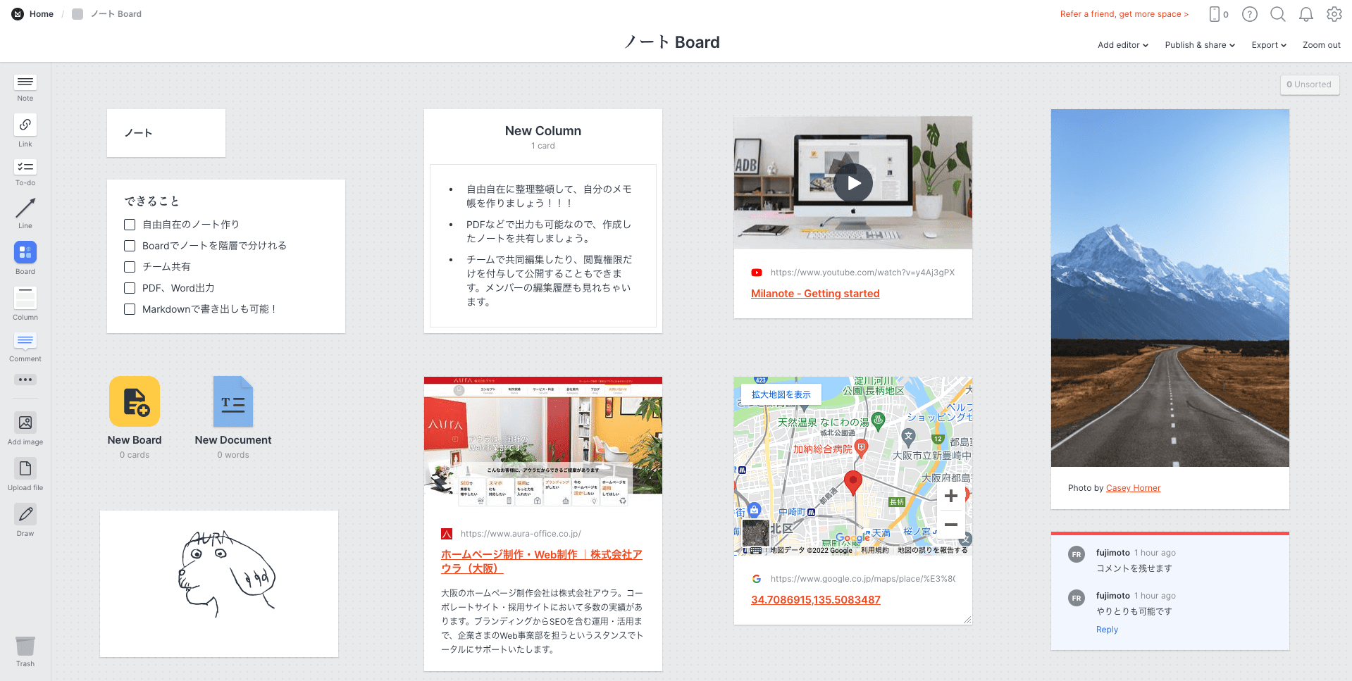 Milanoteでデモノートを作成してみました