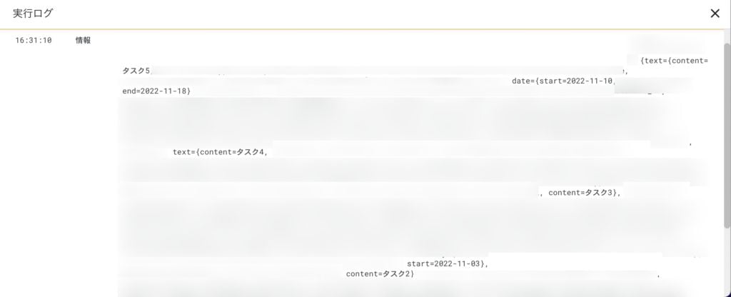 また終了日を入力したタスクに関しては終了日もちゃんと取得できています。