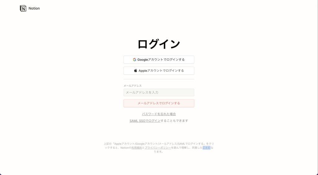 今回はNotionのログインや利用方法に関しては省きますので、