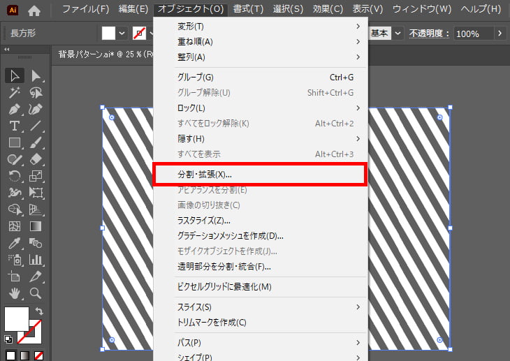 メニューのオブジェクトからアピアランスの分割をクリックします。