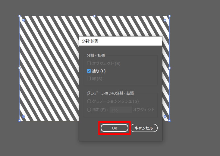 分割・拡張のダイアログが表示されます。特に変更の必要はないので、そのままOKをクリックします。