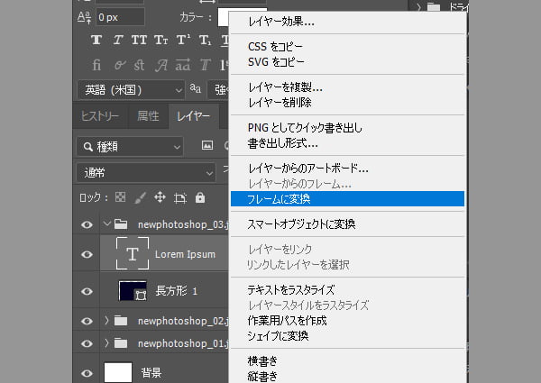 文字のレイヤーをフレームに変換します