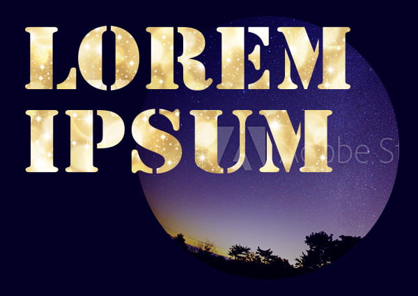 ネイビーの背景に、キラキラした画像を文字の形に切り抜いて置いた画像です。
