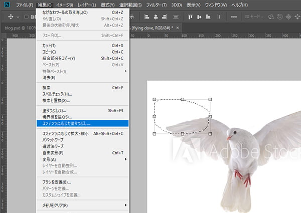 「編集 → コンテンツに応じた塗りつぶし」 を選択します。