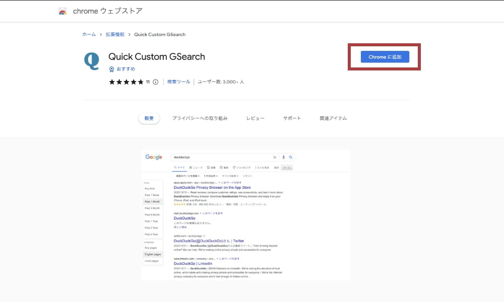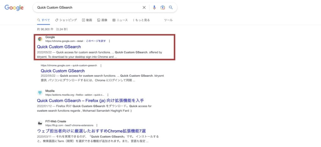 まずはGoogle Chromeで「Quick Custom GSearch」と検索します。