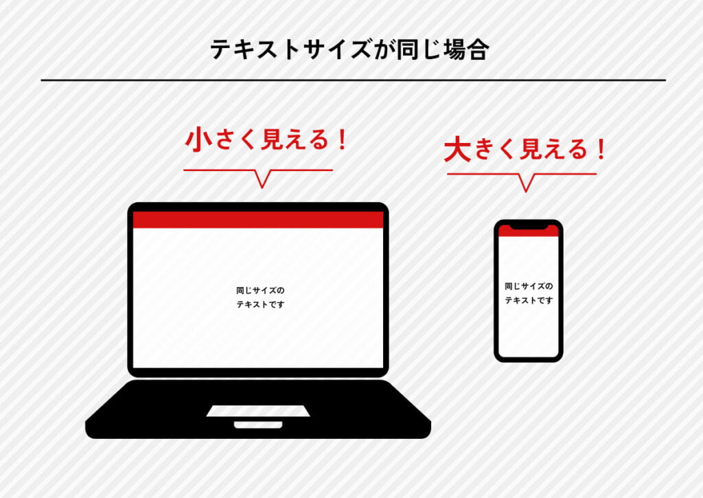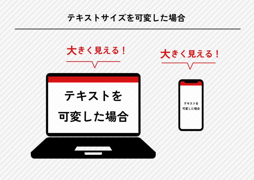 テキストサイズも画面幅に合わせて可変することで見え方に一貫性を持たすことが可能です。