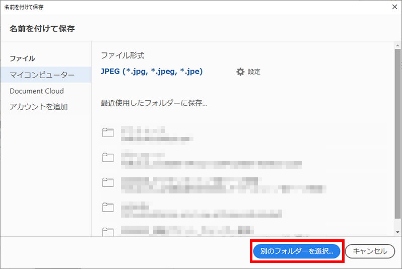 「別のフォルダーを選択」をクリックすると、任意の保存先を指定出来ます。