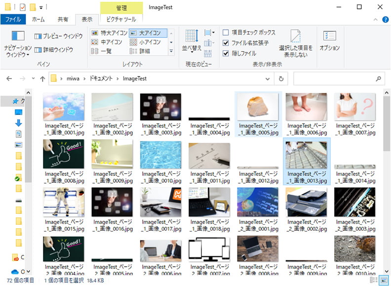 指定したフォルダ内に、画像が書き出されています!