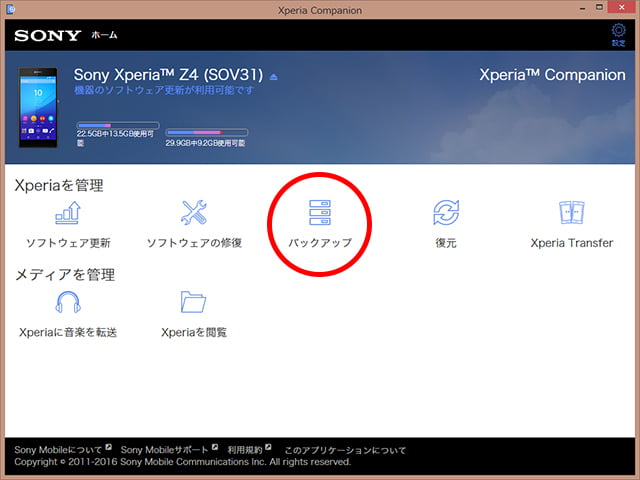 Xperiaは、「Xperia Companion(旧PC Companion)」という専用ツールが出ていますので、そちらを使ってみることに。