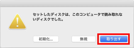 書き込みが終了すると「セットしたディスクは、このコンピュータで読み取れないディスクでした」と表示されます。「取り出す」をクリックして終了です。