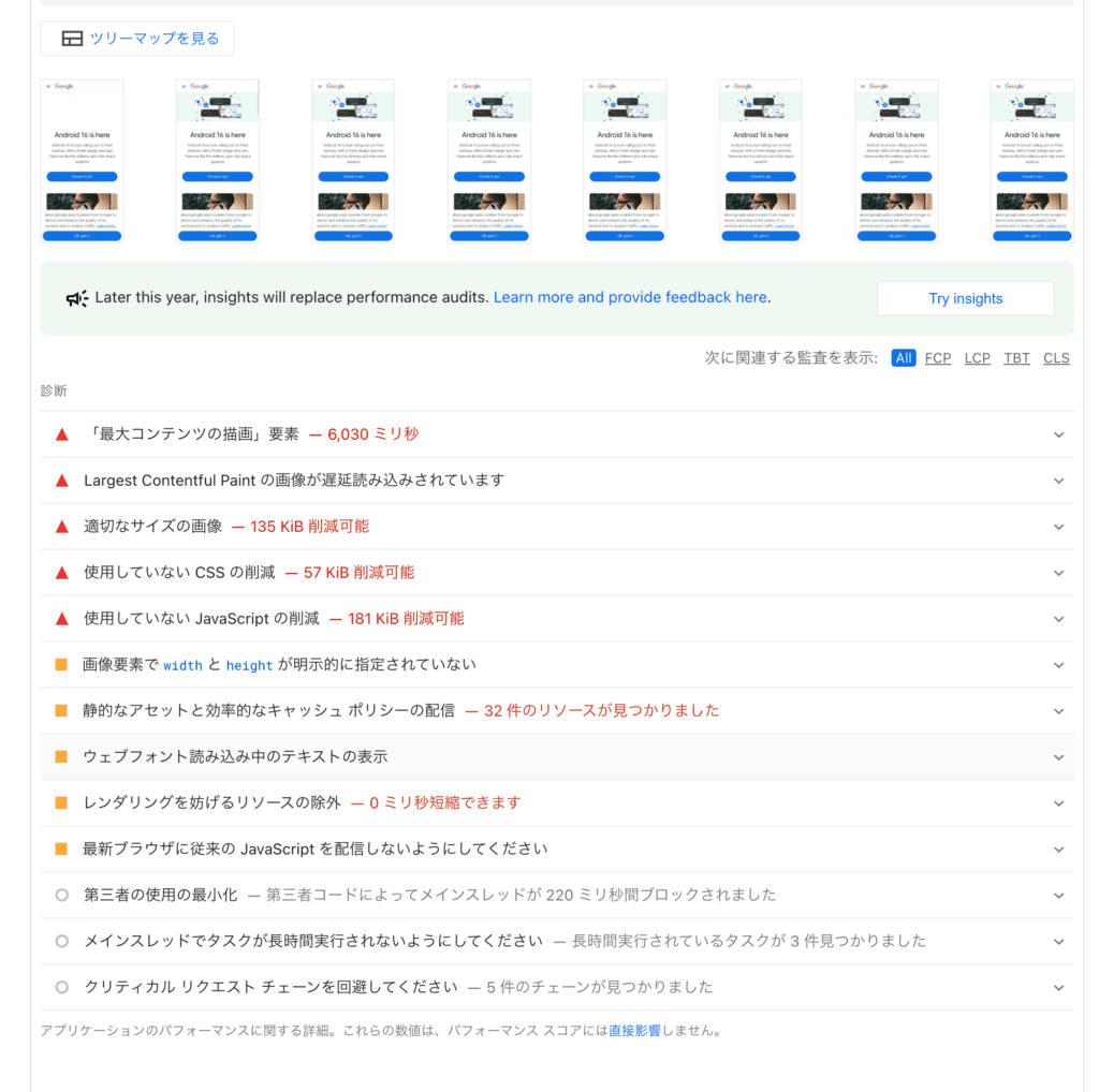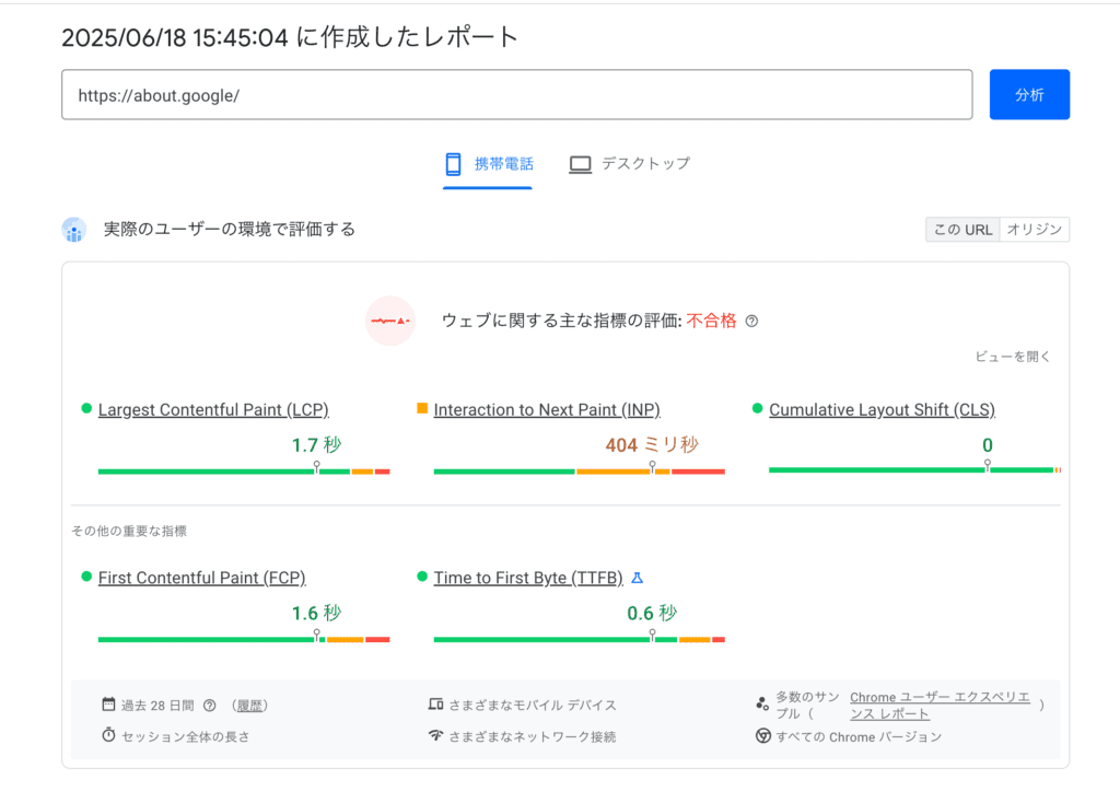 合格/不合格の判定でWebページのパフォーマンスに決定的な違いがあるわけではないですが、不合格の場合は何かしら改善が必要なポイントがあると考えてよいでしょう。