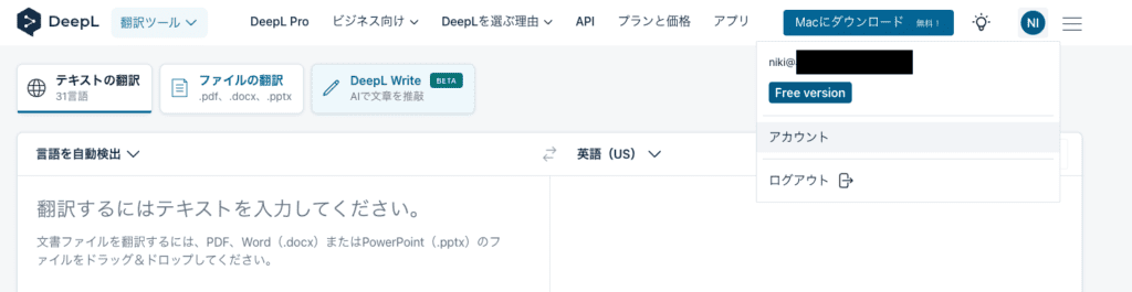 今回、翻訳にはDeepLを利用しますので、まずはDeepLのAPIを利用できるようにアカウント登録を行います。