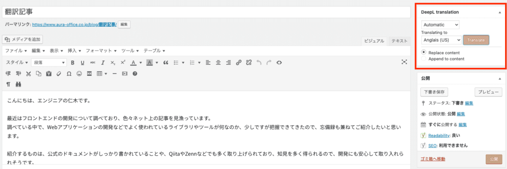 今回はDeepLを利用したWordPressの記事の翻訳方法についてご紹介したいと思います。