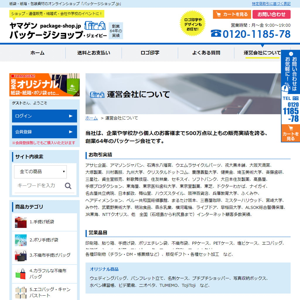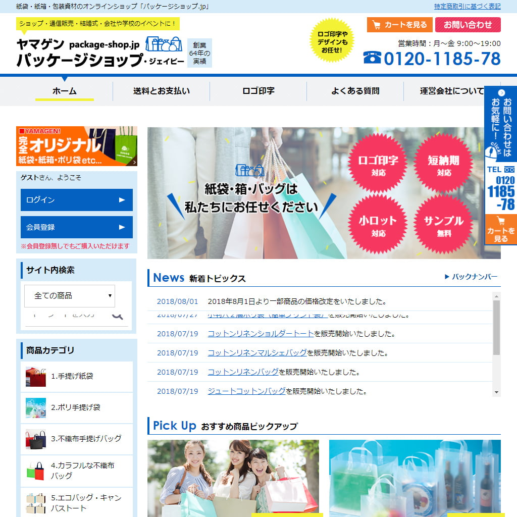 紙袋や紙箱など製造・販売を行っている山元紙包装社様のECサイトをリニューアルしました。